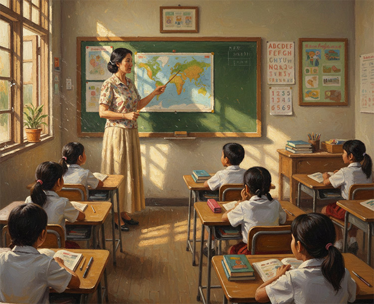 Ilustrasi: Seorang guru sedang mengajar murid-muridnya di kelas – (Sumber: Arie/BJN)