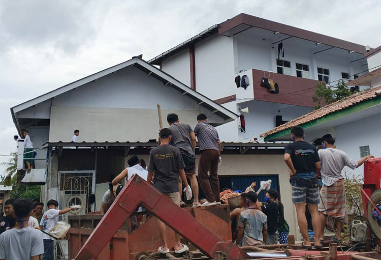 Proses merapihkan sampah dalam bak mobil truk sampah yang dilakukan para santri Pondok Pesantren Api Al-Ghozali Kumbung pada Senin, 16 Februari 2026 – (Sumber: Rizki Ramadani)