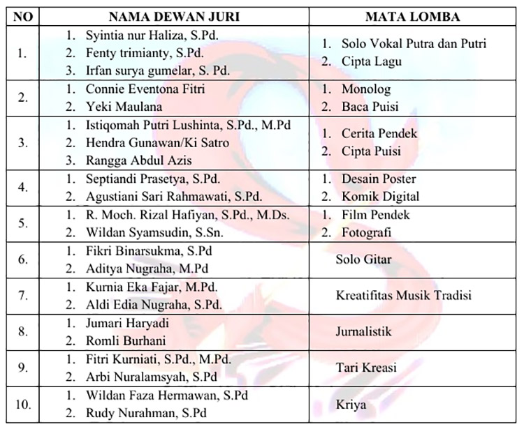 Daftar Juri FLS3N SMA Kota Cimahi