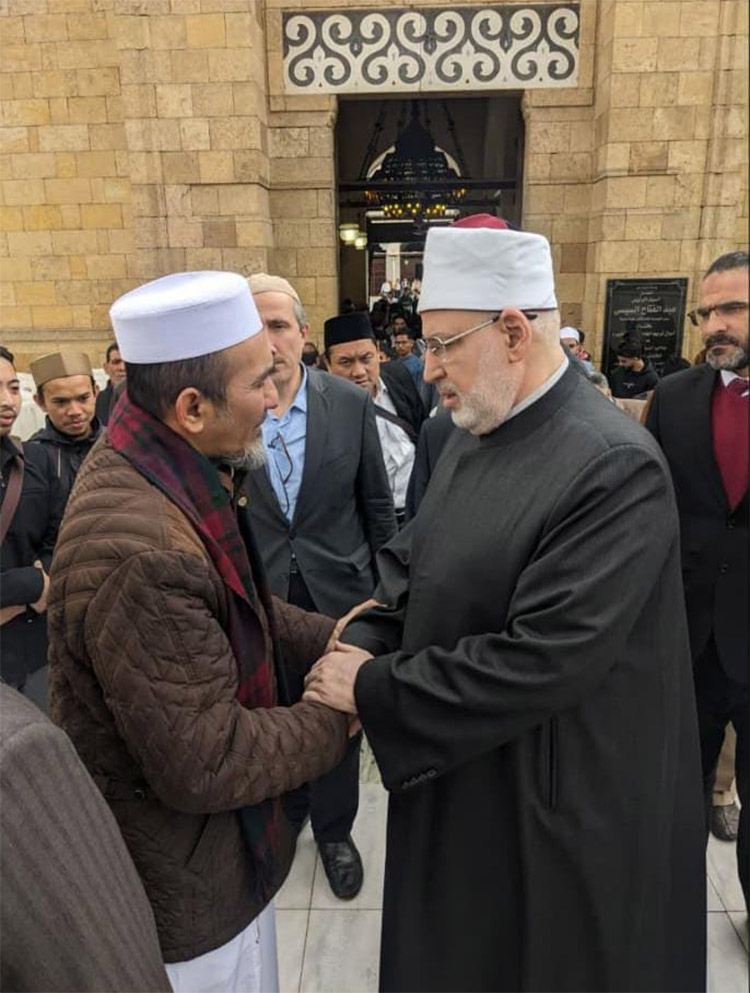 KH. Ahmad Sabri Lubis. bersama wakil Al-Azhar asy-Syarif dan penasihat grand syeikh Prof.Dr. Muhammad ‘Abdurrohman ad-Duwainiy. selepas sholat Jenazah/Kairo